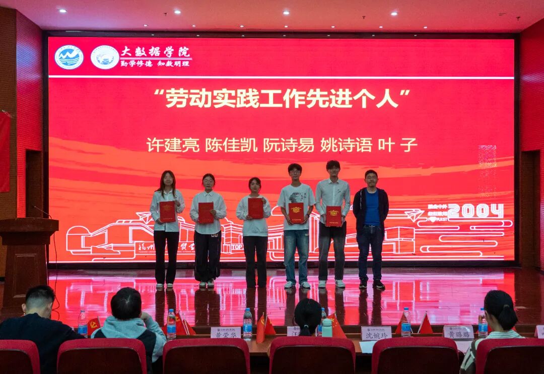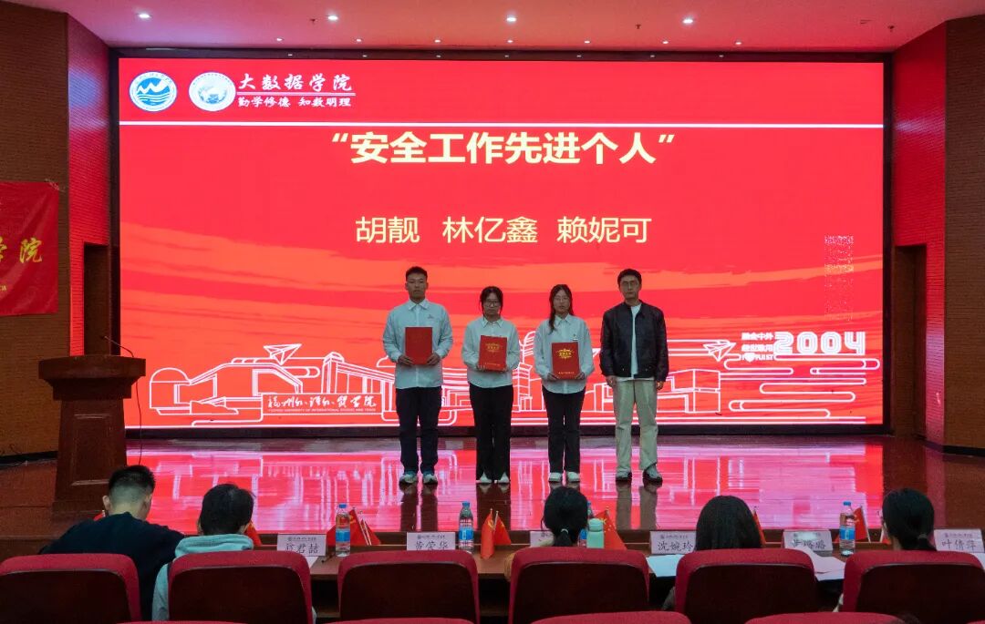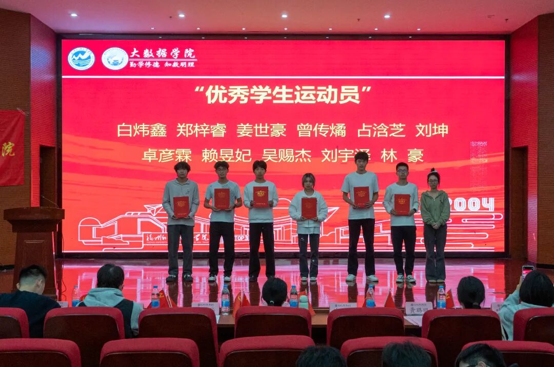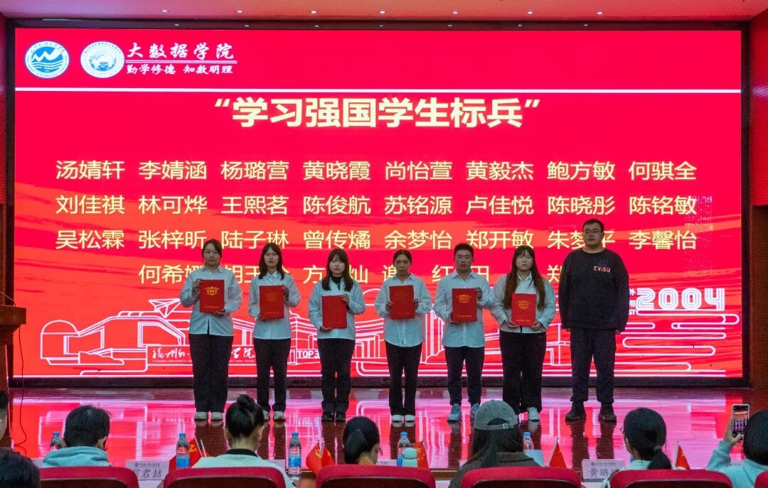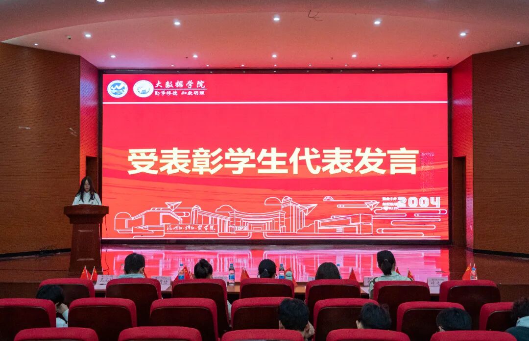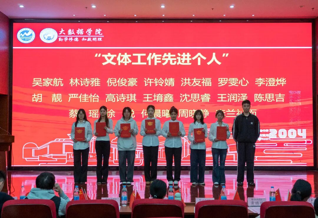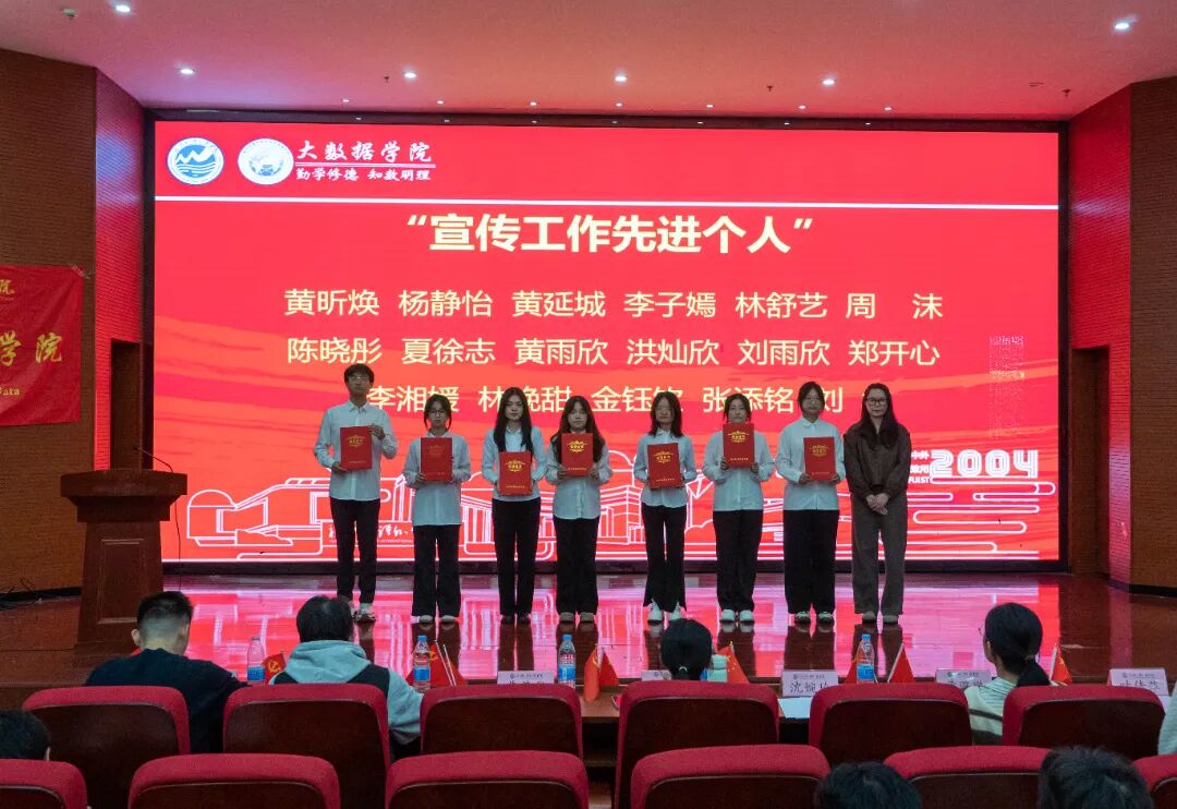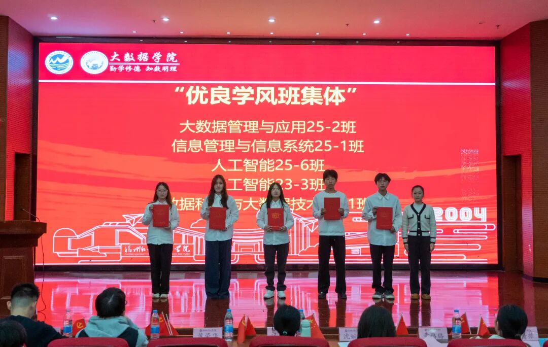 为进一步传承爱国主义精神,铭记‘一二・九’运动先驱的赤诚与热血,凝聚青年学生的爱国情怀,2025年12月8日,大数据学院于行政A楼五层学术报告厅召开“纪念一二・九运动90周年暨2025年度表彰大会”,分党委书记、副院长汪翠茹老师,团委书记、办公室副主任黄荣华老师,团委常务副书记沈婉玲老师,全体辅导员以及获奖学生,各年级专业学生代表出席本次大会。