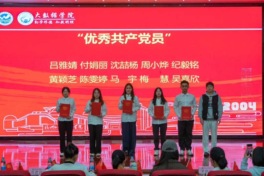 分党委副书记黄荣华老师宣读《中共福州外语外贸学院大数据学院委员会关于表彰优秀共产党员、学习强国学生标兵、优秀党务工作者、先进基层党支部的决定》