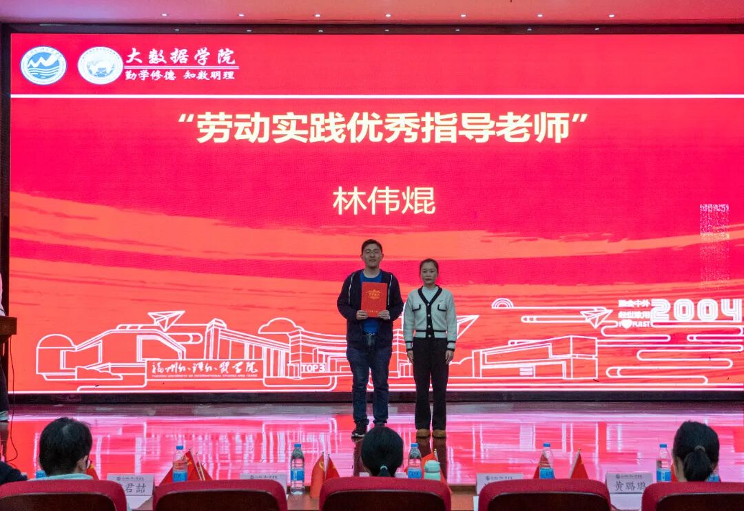 大数据学院办公室副主任黄荣华老师宣读《福州外语外贸学院大数据学院关于表彰2025年度优秀个人与集体的决定》