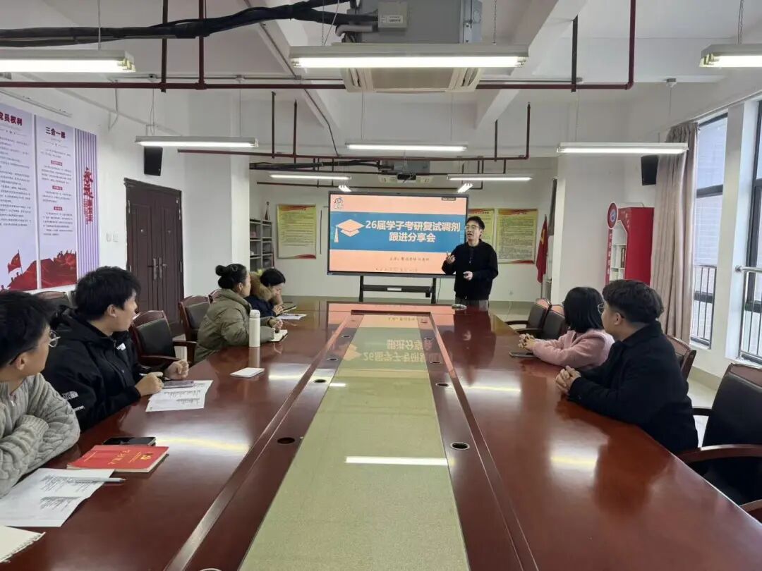 江斌结合我院考研专业与实际情况,对近几年的考研情况做详细分析,从复试技巧、调剂策略等维度,提出分类帮扶方案,为学院2026届下一步的考研指导工作提供专业指引。
