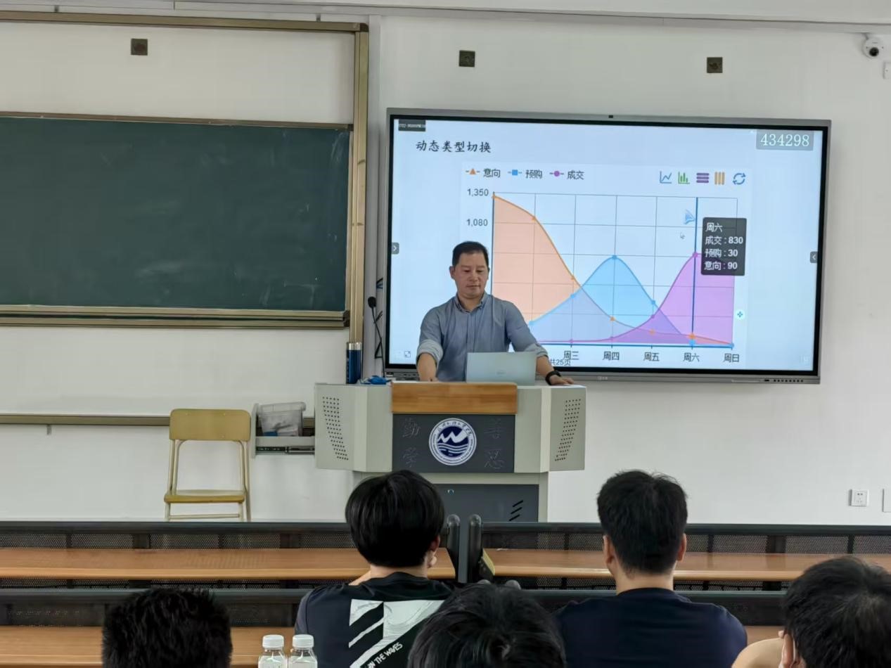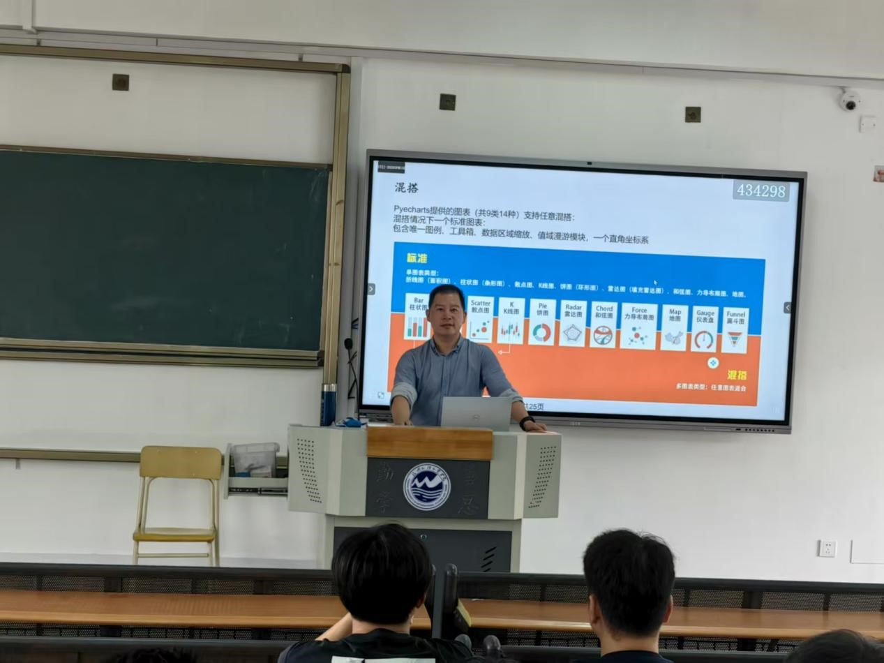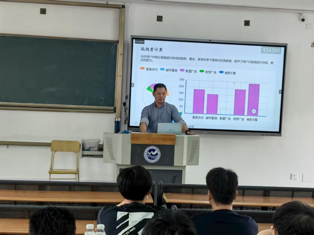 【教学动态】大数据学院开展“‘信息技术+’示范课堂”活动 为推进信息技术与教育教学深度融合,探索信息化背景下课堂教学模式创新,充分发挥优秀教师的示范引领作用,2024年4月9日(周二)下午,我院甘智平老师在西区教学2号楼203教室开展“‘信息技术+’示范课堂”公开课活动。学院师生积极参加参与观摩学习。 本次示范课以《数据可视化技术》课程中的第二章可视化常用技术为授课内容,老师紧扣“信息技术赋能教学”的核心目标,立足学科特点与学生学情,综合运用智慧教学平台、虚拟仿真实验系统、互动式多媒体课件及图表数据分析工具Echarts,构建了“课前-课中-课后”全流程数字化教学场景,生动展现了“信息技术+”背景下“以学生为中心”的课堂新生态。 大数据学院办公室 2024年4月10日