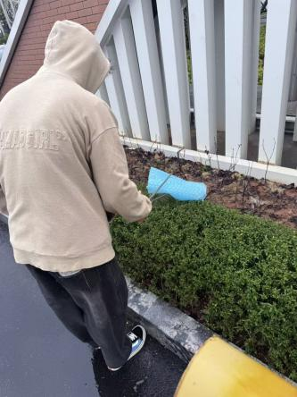 活动开始前,各班结合清洁区域特点,提前做好分工安排:数科24-3班负责教工宿舍1号楼到东区10、11号学生宿舍楼周围的主干道与绿化带,数科24-4班则聚焦东区后门到风车处、北区到东区6号学生宿舍楼新建栈道及6号宿舍楼周围的主干道、栈道与绿化带。人工智能25-3班负责宿舍1号楼周边绿化带及主干道,人工智能25-4班负责校门口周边绿化带及主干道。明确的区域划分,让同学们一到现场便迅速进入状态。