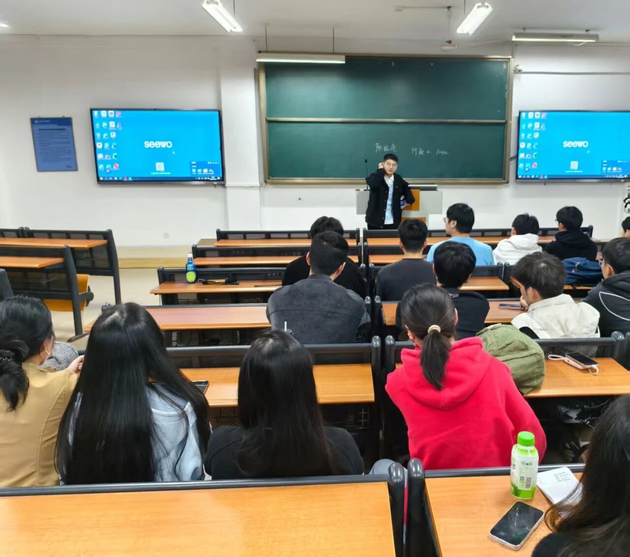 班会现场,施文涛导师围绕同学们的核心发展需求展开深入讲解,针对不同发展方向的同学提出了明确而务实的学业要求。对于有考公考编计划的同学,他着重强调:大学英语四、六级考试成绩是诸多岗位的硬性门槛,务必高度重视、全力备考,为未来职业选择奠定坚实基础;针对计划从事计算机相关工作的同学,他建议大家积极参与专业竞赛、主动投身实践项目,通过“以赛促学、以项目练能”的方式,积累实战经验、提升专业竞争力,为职场进阶做好充分准备;同时,针对毕业论文这一学业收尾的关键环节,施文涛导师特别提醒全体同学:务必扎实学好人工智能相关课程,深刻领会课程核心知识与应用逻辑,为后续毕业论文的选题、研究与撰写奠定坚实的理论与实践基础。