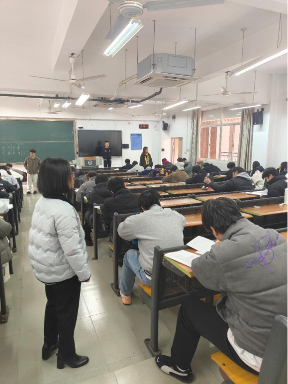 【数院动态】我院开展期末巡考工作 为进一步加强考风考纪建设,严肃考试纪律,保障期末考试公平、公正、有序进行,1月5日,我院开展期末巡考工作,院领导深入考场一线,对监考教师履职情况、学生应考状态、考场秩序及考试环境等进行全面巡查。 巡考过程中,院领导严格对照学校考试管理规定,重点检查是否存在违规违纪行为,督促监考人员切实履行职责,确保考试流程规范严谨。同时,强调以考促学、以考促教,推动形成良好学风与教风。从巡查情况看,各考场组织严密、秩序井然,师生整体表现良好,充分展现了我院优良的教育教学风貌。 未来,学院将持续强化考试全过程管理,提高人才培养质量,为营造风清气正的育人环境提供坚实保障。 大数据学院办公室 2026年1月6日
