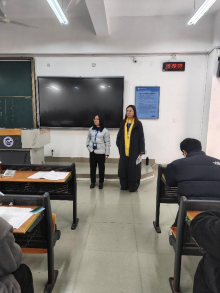 为进一步加强考风考纪建设,严肃考试纪律,保障期末考试公平、公正、有序进行,1月5日,我院开展期末巡考工作,院领导深入考场一线,对监考教师履职情况、学生应考状态、考场秩序及考试环境等进行全面巡查。