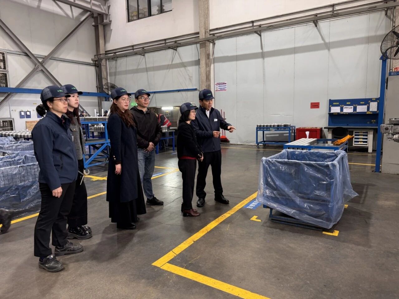 座谈会前,学院一行在耀美斯坦利团队林凯副总经理的引导下,深入企业生产一线与品质控制中心。在焊接加工车间,学院一行近距离观摩了焊接新能源叉车旋转控制台的全过程,了解到从埋伏焊、数控焊到退火、气密测试的全工序制造流程,全方位了解企业从原材料加工到成品检测的全链条质量管控体系,深刻体会“持续改善、精益求精”的企业文化。