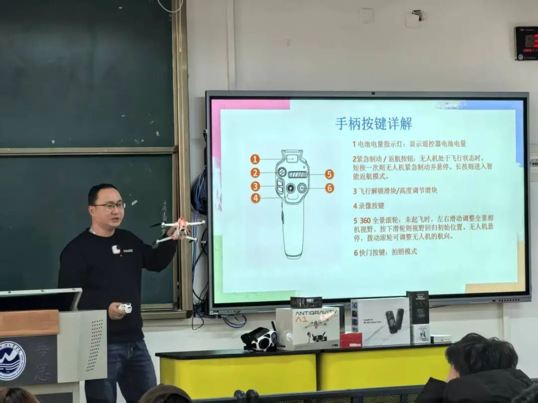 3月10日下午,低空经济产业学院联合福建福翼无人机科技有限公司在教5101开展“撬开数码新世界”全景无人机与影像技术专题宣讲会暨校园体验活动。旨在深化产教融合,推动前沿影像科技在教育教学与学生实践中的应用。