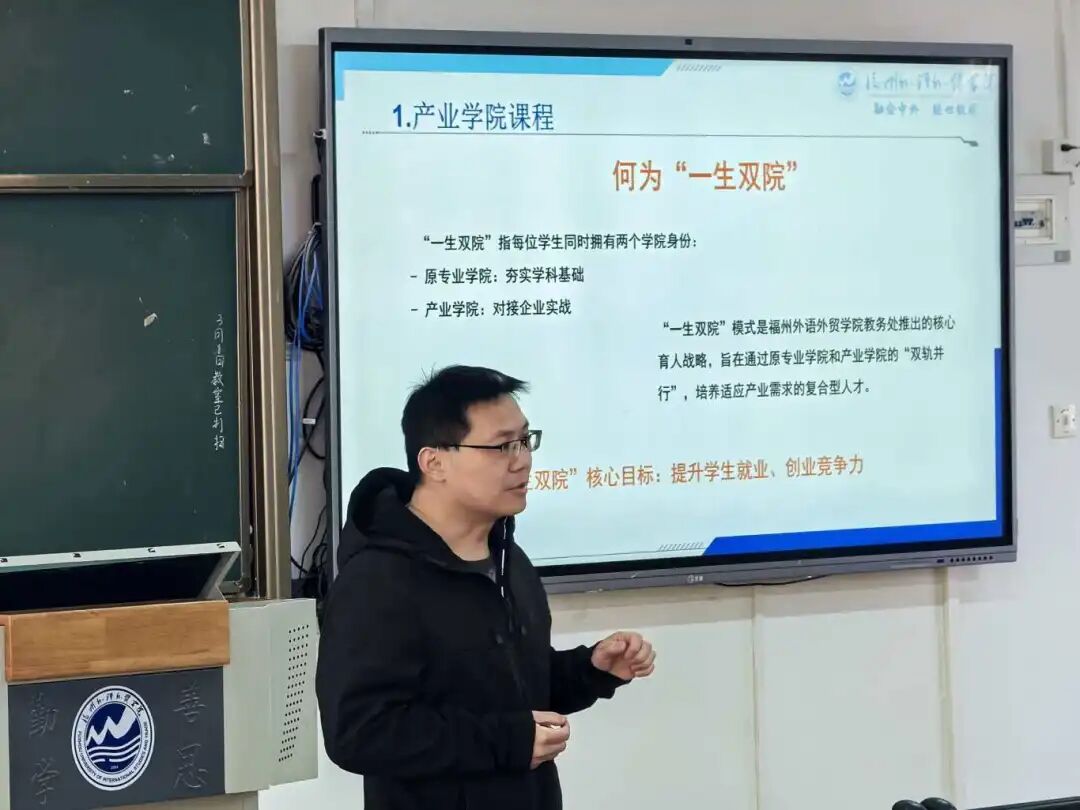 宣讲会上,低空经济产业学院副院长黄瑞垠首先作2025-2026学年第二学期专题宣讲,围绕产业学院的发展规划、课程建设方向及学生实践能力培养进行了深入解读。他表示,学院将持续引入行业优质资源,搭建产学研协同平台,为学生提供更多接触前沿技术与产业实践的机会。