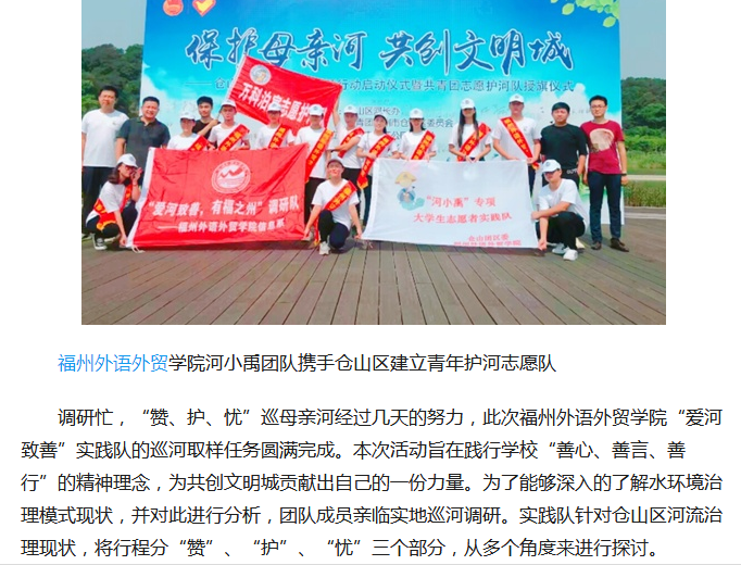 今日头条报道:福州外语外贸学院学子:赴仓山巡江河,创文明和谐城