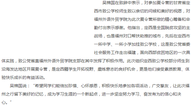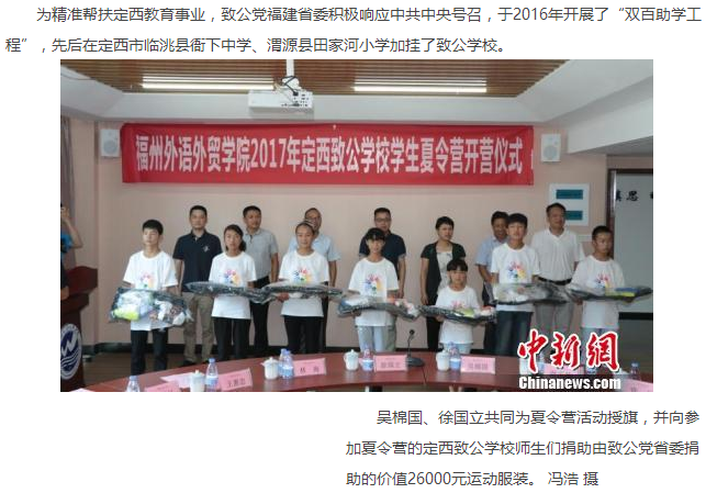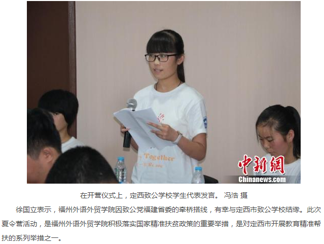 中国青年网报道:精准帮扶定西教育 2017年定西致公学校学生夏令营福州开营