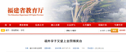 福建省教育厅报道:福外学子又登上全国领奖台