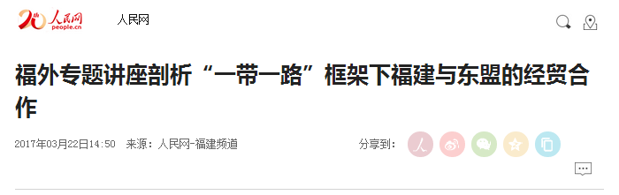 人民网报道:福外专题讲座剖析“一带一路”框架下福建与东盟的经贸合作