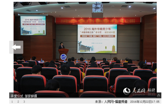 人民网报道:2016年海外华裔青少年“中国寻根之旅”冬令营福州开营
