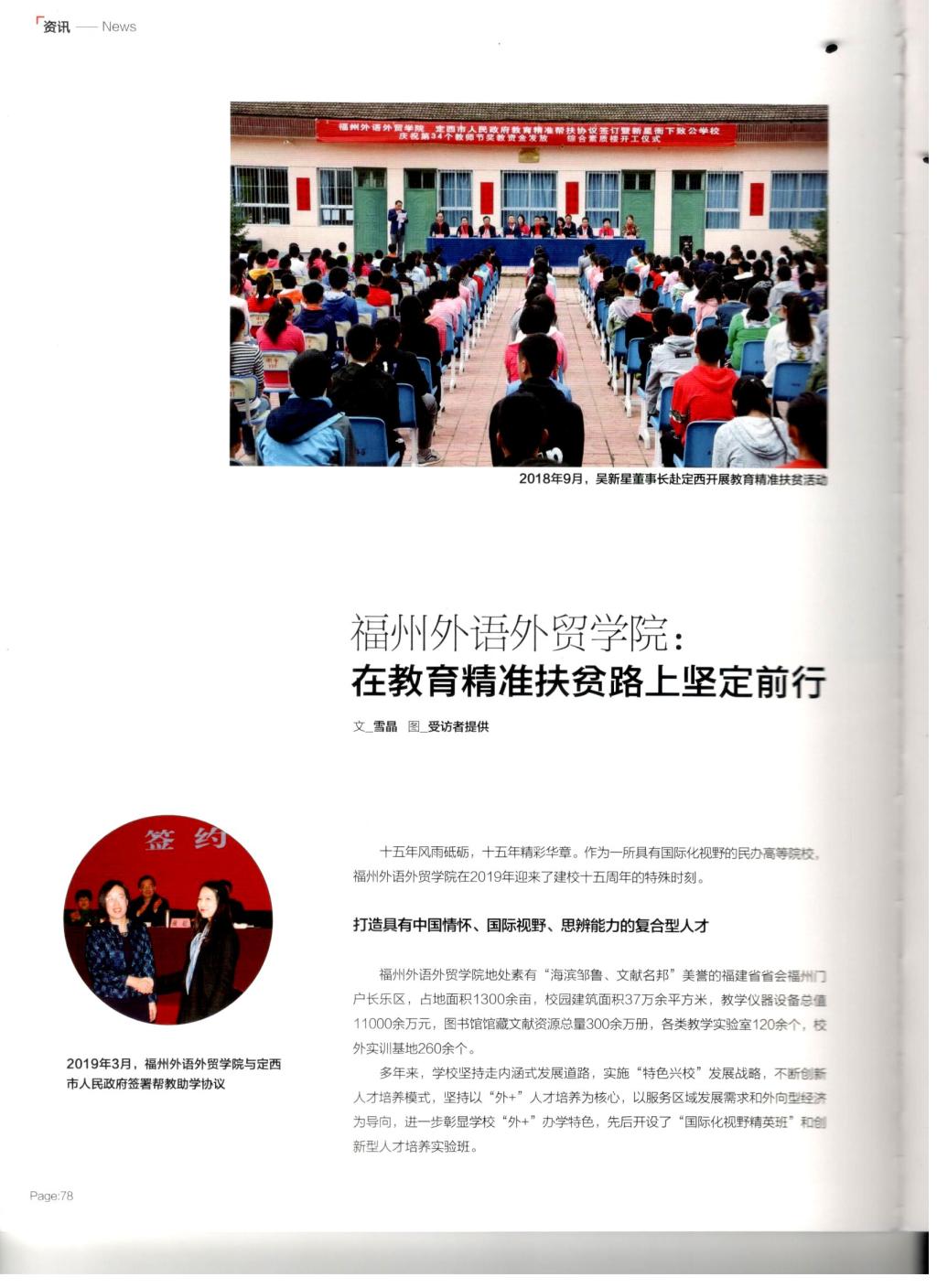 闽声杂志:福州外语外贸学院在教育精准扶贫路上坚定前行