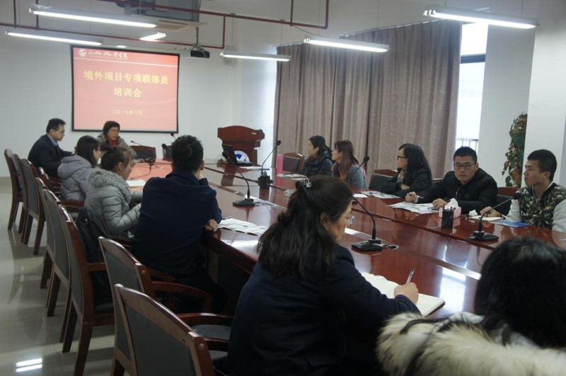 3月14日,国际教育中心(港澳台办公室)召开境外项目专项联络员培训会,由该中心主任李玉平做动员讲话,副主任卢人聪主讲,各系专项联络员共计二十余人参加了会议。