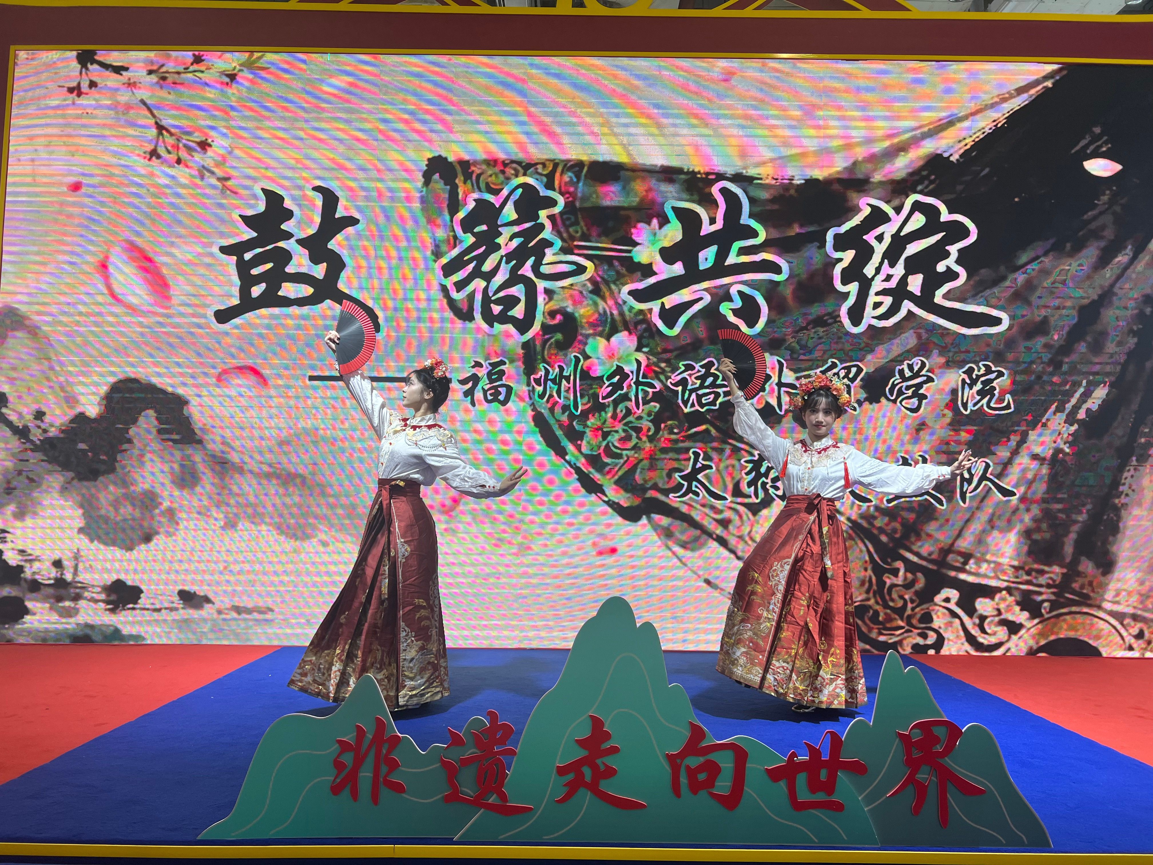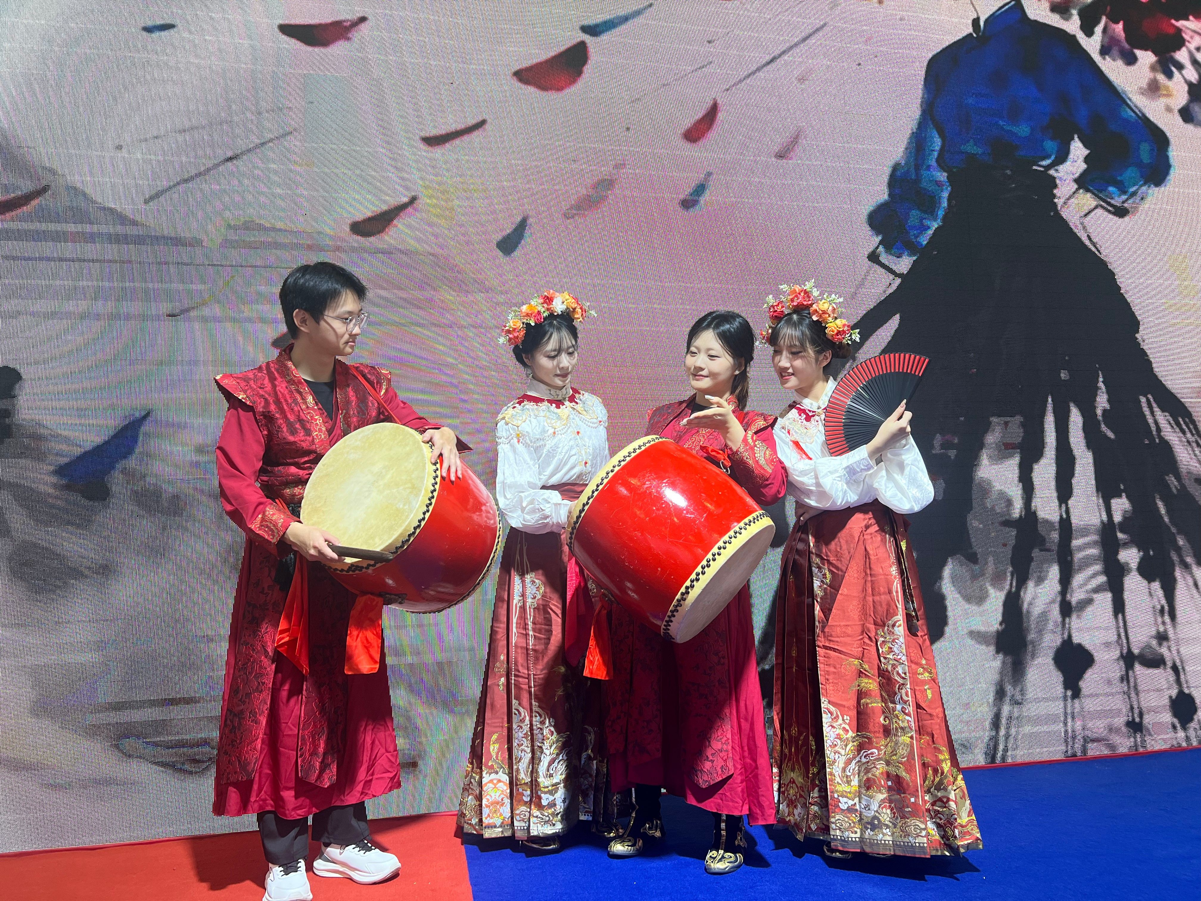 在福建省贸促会的邀请下,福州外语外贸学院“太狩”太鼓队(指导老师:曾凌云,学生:陈嘉道、吕文凯、王晗莹、林思琪、刘若希雨),惊艳亮相,以一场融合非遗与现代艺术的震撼表演《鼓簪共绽》,向世界自信展示福外青年的卓越风采,生动诠释了学校“外+”办学特色的丰硕成果。