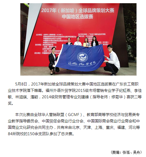 人民网报道:福外学子获2017年新加坡全球品牌策划...