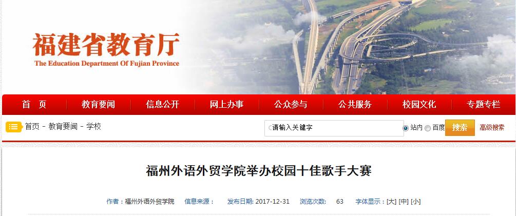 省教育厅网站报道:福州外语外贸学院举办校园十佳...