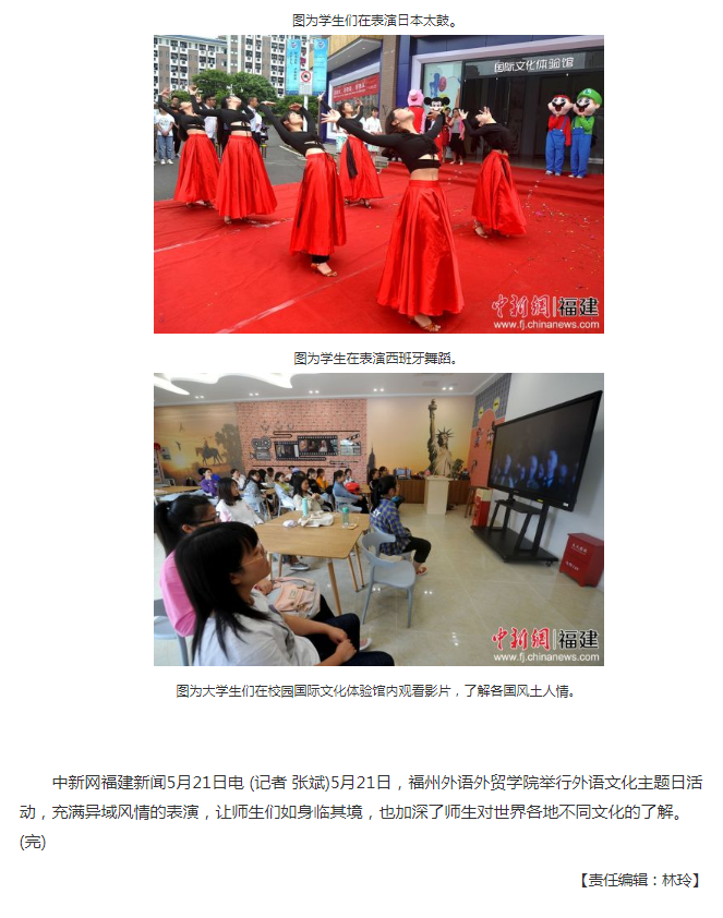 福建日报报道:开馆 福州外语外贸学院设国际文化体...