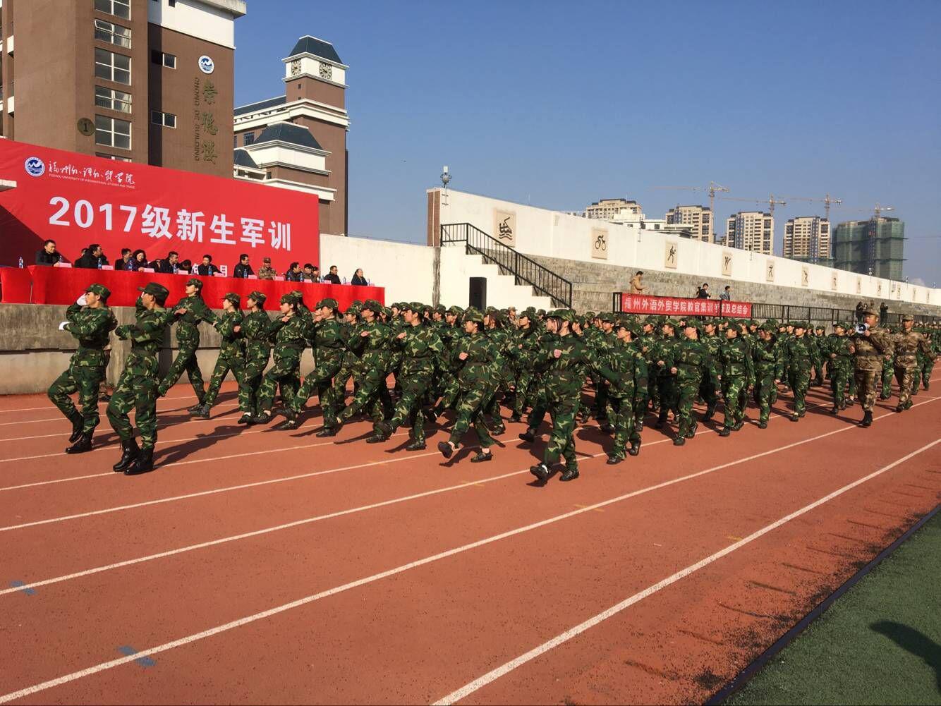 为展现军训成果,检验军训成绩。福州外语外贸学院于1月12日在田径场召开2017级新生军训总结大会。党委书记、副校长陈炳钦,党委副书记、校长助理、工会主席季祖强,长乐区人民武装部民兵应急连负责人、军训团团长黄明利,各中心、各系部负责人,军事训练教学部主任,2017级思政素质教师,全体教官以及2017级全体同学出席了本次大会。