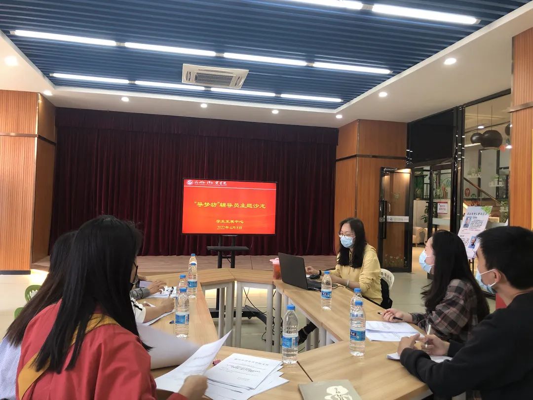 4月8日下午,我校在学生发展中心二楼开展第五期“导梦坊”辅导员沙龙活动,学生发展中心学业管理室副主任林修婷就资助育人作主题分享,各学院新聘辅导员参加活动。