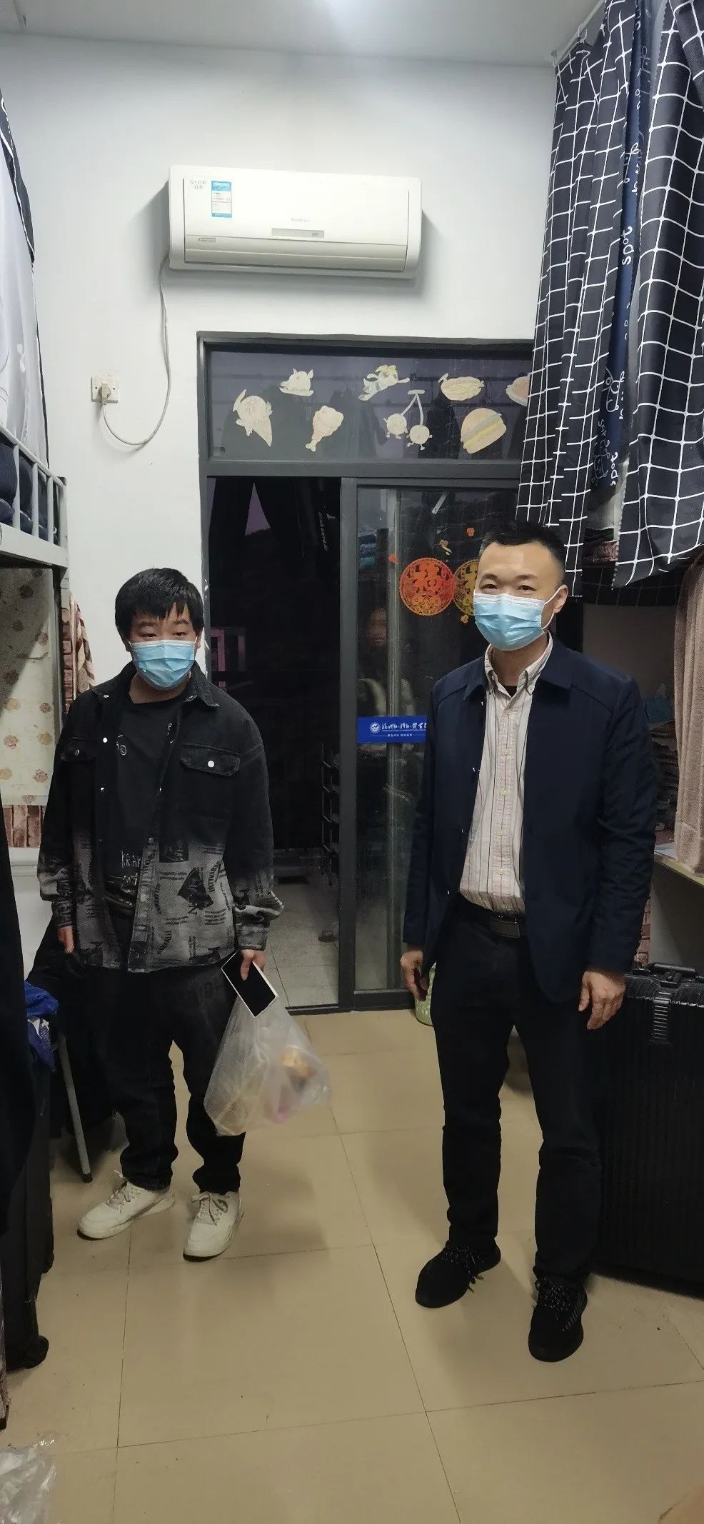 学生发展中心全体成员常态化深入学生宿舍、课堂、食堂,细致了解、记录同学们的各方面情况,及时发现问题,协同相关部门解决问题,满足学生诉求,叮嘱同学们认真上好线上和线下课程,不旷课、不迟到;注意宿舍用电安全和卫生状况,认真配合学校做好疫情防控期间的各项工作。