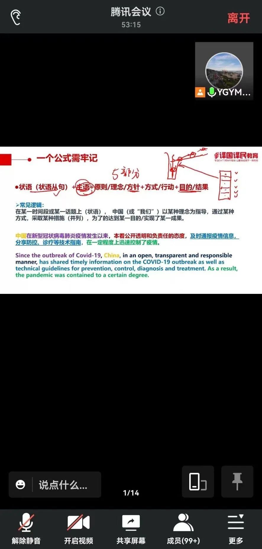 4月12日下午,翻译系开展时政翻译讲座。讲座由我院校企合作单位译国译民讲师Andrew主讲,是我院“三进”活动的助力延伸。为配合疫情防控相关工作,Andrew在腾讯会议平台与同学们“云端“见面。