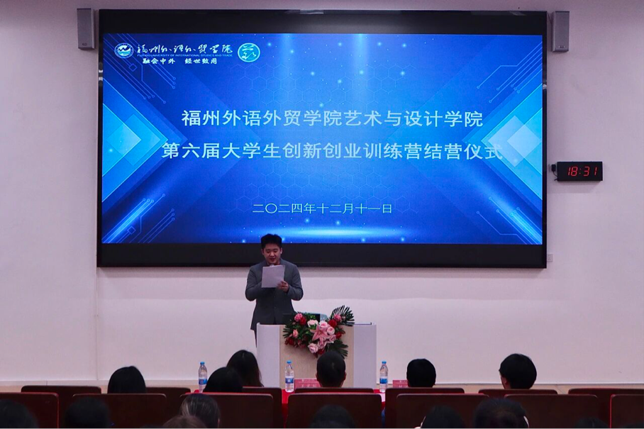 1月2日晚,艺术与设计学院第六届创新创业训练营在滨海校区教学附属楼顺利结营。艺术与设计学院滨海校区团总支书记、学生第一党支部书记王家利老师、艺术与设计学院滨海校区团总支指导老师代明娟老师、艺术与设计学院滨海校区团总支指导老师林兴彬老师、艺术与设计学院学生团委副书记李亚捷同学以及250余名训练营学员出席了结营仪式。