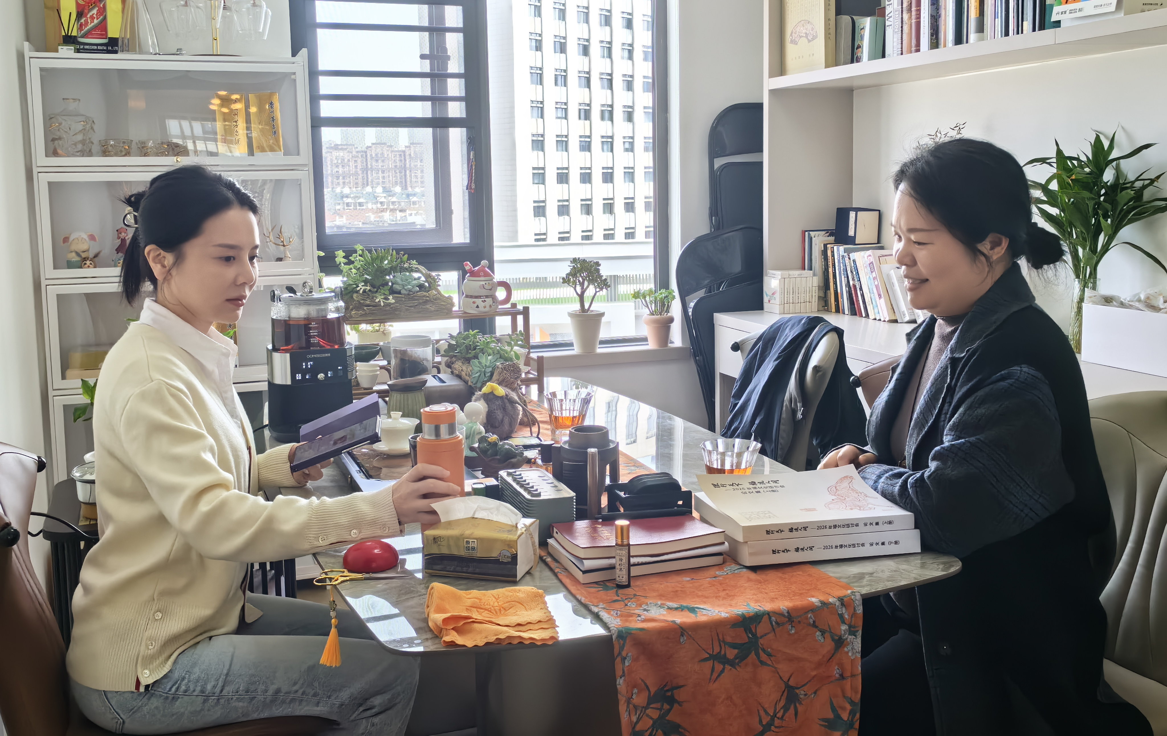 在交流中,系专业负责人介绍了数字媒体艺术系的专业特色、人才培养成果及学生数字艺术创作能力。朱静董事长重点介绍了集团在“文化+科技”融合领域的创新实践,特别提及了集团正在着力研发的“AI陪伴机器人”项目。该项目旨在通过人工智能与情感交互技术,为文旅场景、文化导览及社群服务提供智能化、拟人化的陪伴体验,是数字技术在文旅产业应用的前沿探索。双方围绕AI数字人、交互叙事、虚拟现实内容创作等方向的人才需求与培养路径进行了深入探讨。