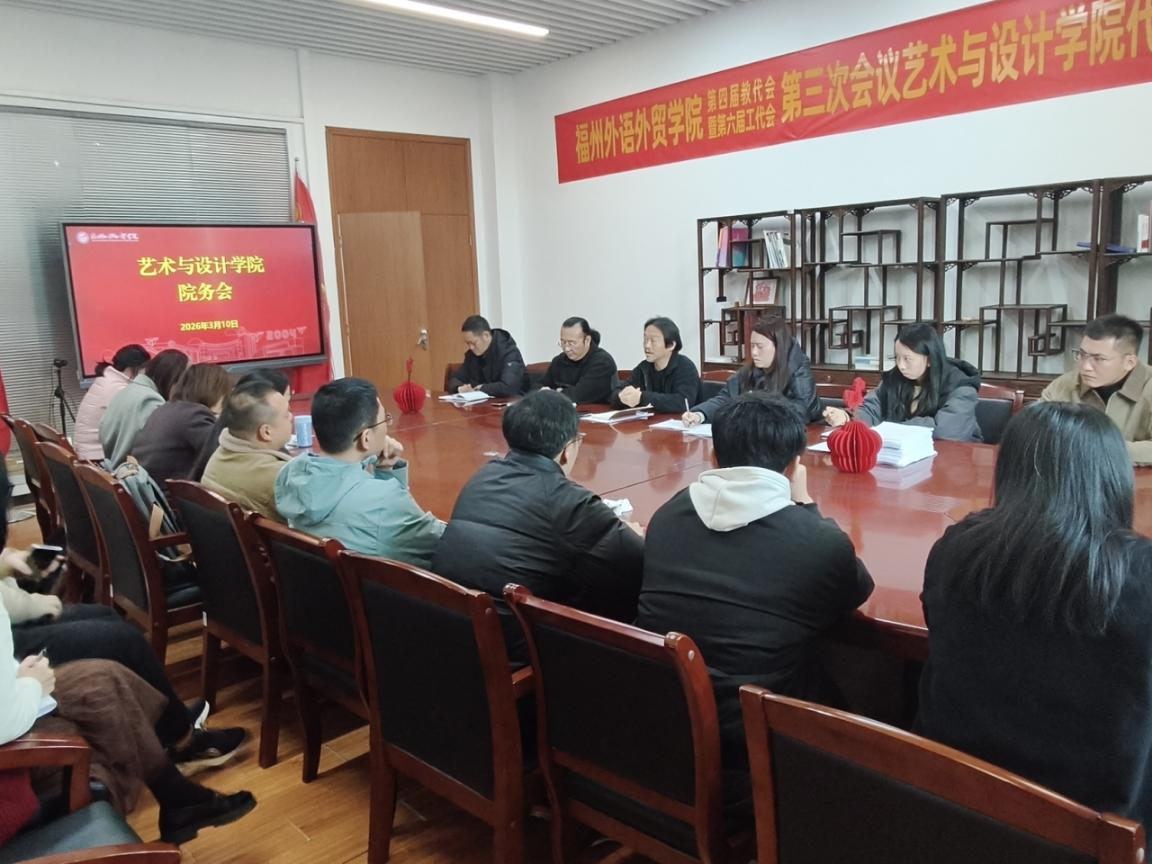 为切实保障新学期教学工作平稳有序开展,夯实教学质量根基,3月10日上午,艺术与设计学院召开期初教学工作会议,全面吹响新学期教学工作奋进号角。学院丁铮院长、韦志钢副院长、郑则凌副院长出席会议,各系主任、产业学院副院长、教学秘书及实验员全员参会,凝聚共识、共谋发展。