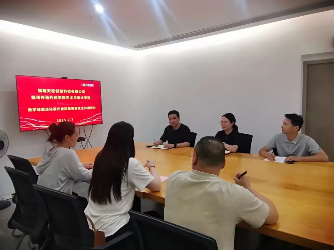 7月7日,福州外语外贸学院艺术与设计学院成功举办数字非遗活化设计虚拟教研室校企共建研讨会。副院长郑则凌、动画系主任陈力彦,专业教师代表王家荣以及天宏创世科技有限公司教育事业部总监胡仙依,共同为数字非遗活化设计领域的人才培养与产学研合作出谋划策。